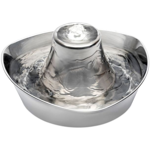 Help your cat to stay happy, healthy and hydrated with the PetSafe Seaside Stainless Steel Pet Fountain. Pet fountains continuously provide your pet with fresh, filtered water. Cats and dogs are attracted to flowing water, which encourages them to drink more water and supports their overall health. This pet fountain holds 1.8 litres of water, the perfect size for your cat or small dog. The quiet design of the fountain causes the water to softly bubble over the stainless steel tower (as opposed to a free-falling stream), which allows shy or timid cats to feel comfortable approaching the fountain.