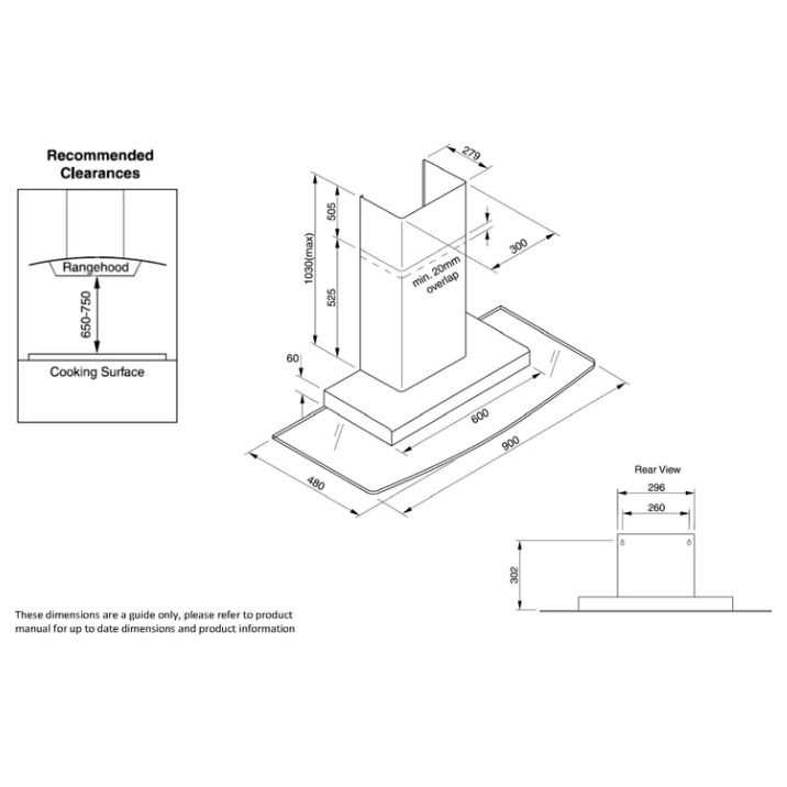 - Dimensions: 900mm (w) x 525mm-1030 (H) x 480mm (D)